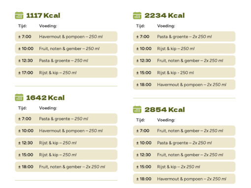 We provide some sample daily meal plans, based on the number of calories. Please note: these are just examples. Every tube feeding from Newly Blend is a complete diet. Each variant can be used separately or in combination with the others, at any time of the day.