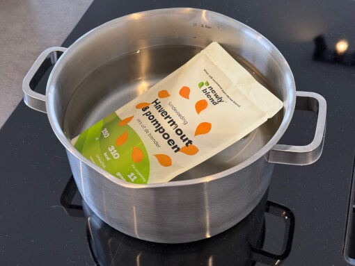 2. Plaats de gesloten verpakking circa 20 minuten in heet (net niet kokend) water.